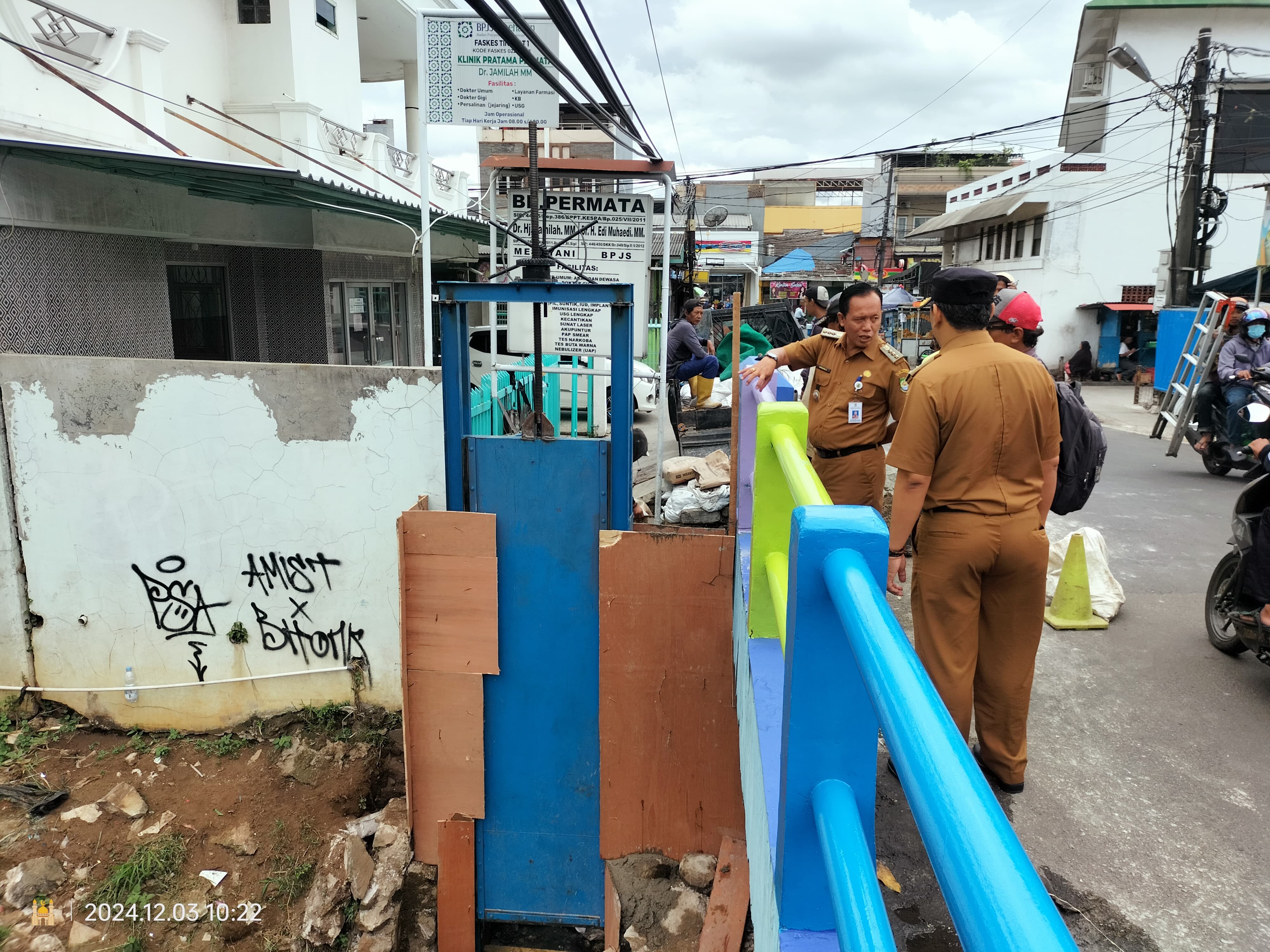 Camat dan Lurah Sangiang Jaya Monitoring Pengerjaan Pergantian Pintu Air di Jembatan Dr. Jamilah Taman Cibodas