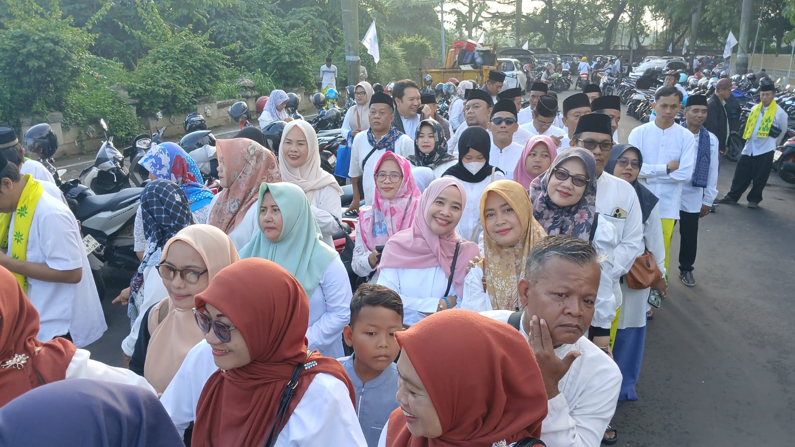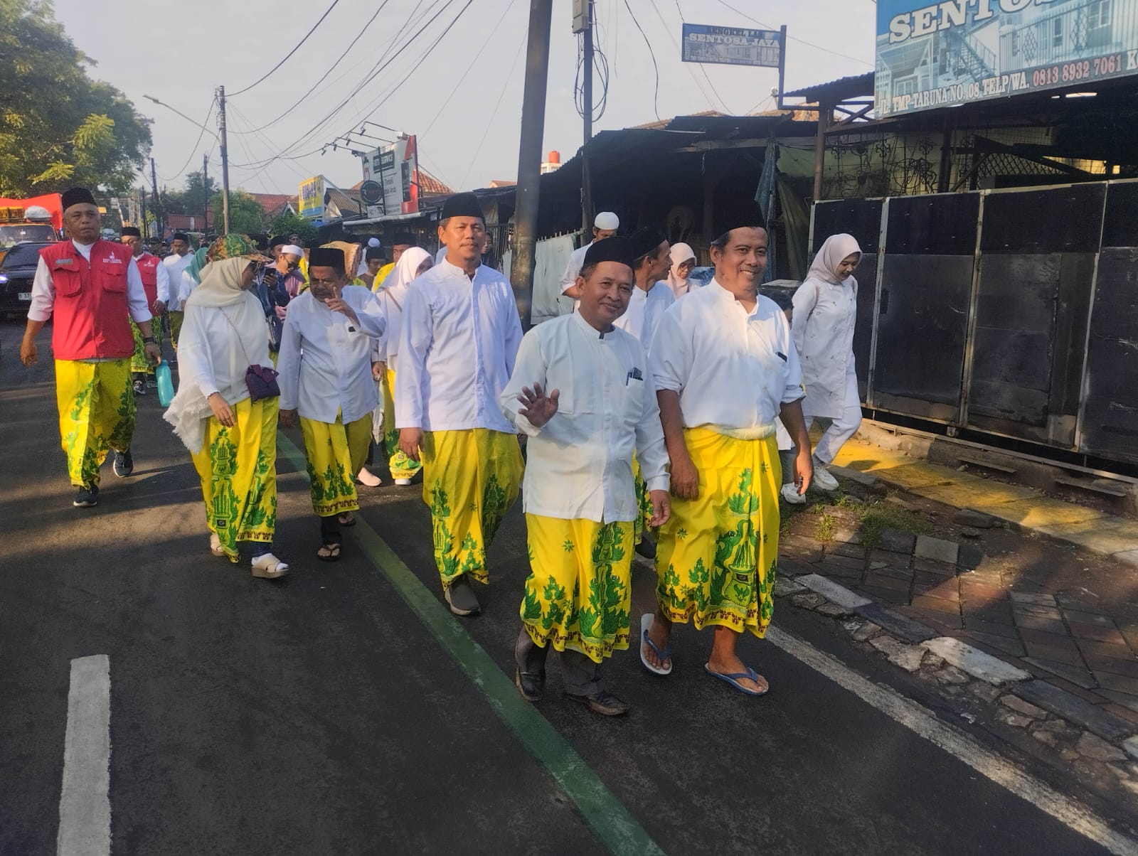 Camat Periuk tampak antusias berjalan kaki bersama peserta lain dalam barisan Jalan Sarungan sambil menyapa warga dengan hangat. Keterlibatan jajaran Kecamatan Periuk dalam kegiatan ini menjadi wujud dukungan terhadap program keagamaan dan kebudayaan Pemerintah Kota Tangerang.