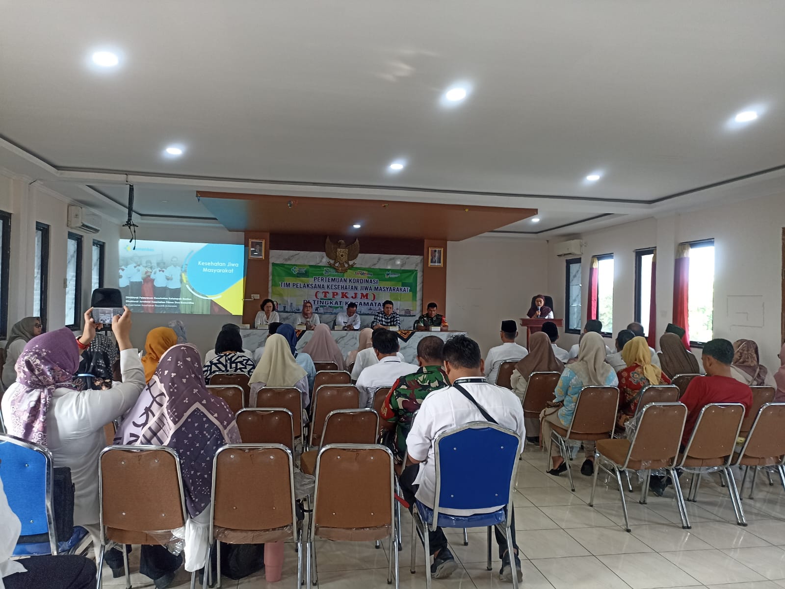 Dalam sambutannya, Camat H. Nanang Kosim mengungkapkan pentingnya koordinasi antara berbagai pihak dalam upaya mengatasi permasalahan kesehatan jiwa yang semakin mendapatkan perhatian di masyarakat. Beliau menekankan bahwa kesehatan jiwa merupakan salah satu aspek vital dalam memastikan kesejahteraan masyarakat, sehingga perlu adanya perhatian khusus dari semua pihak, baik pemerintah, tenaga medis, maupun masyarakat itu sendiri.