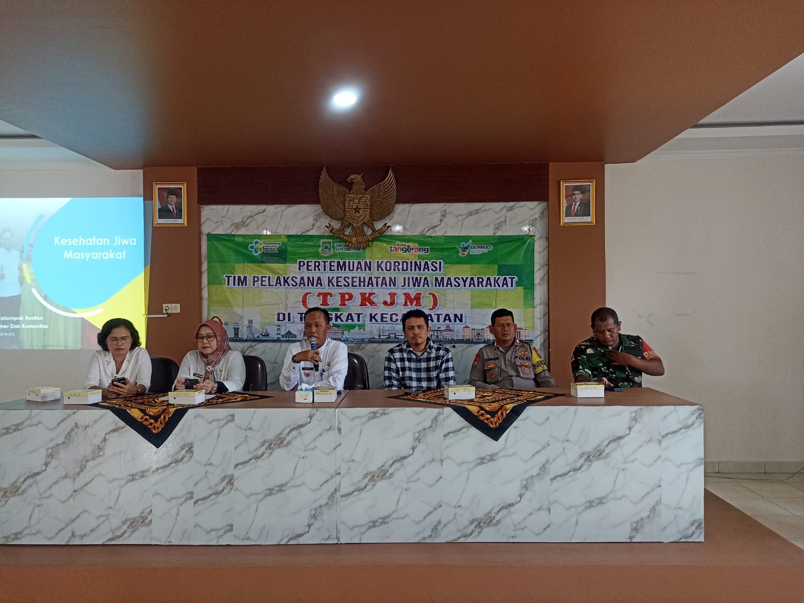 Tangerang, 16 Mei 2025 – Dalam upaya meningkatkan kualitas layanan kesehatan jiwa di tingkat kecamatan, Camat Periuk, H. Nanang Kosim, S.Sos., M.Si, memberikan sambutan sekaligus membuka pertemuan koordinasi Tim Pelaksana Kesehatan Jiwa Masyarakat (TPKJM) Tingkat Kecamatan di Aula Kelurahan Periuk. Acara ini dilaksanakan pada hari Jumat, 16 Mei 2025, dan dihadiri oleh berbagai stakeholder terkait, termasuk petugas kesehatan, perwakilan dari puskesmas, serta tokoh masyarakat.