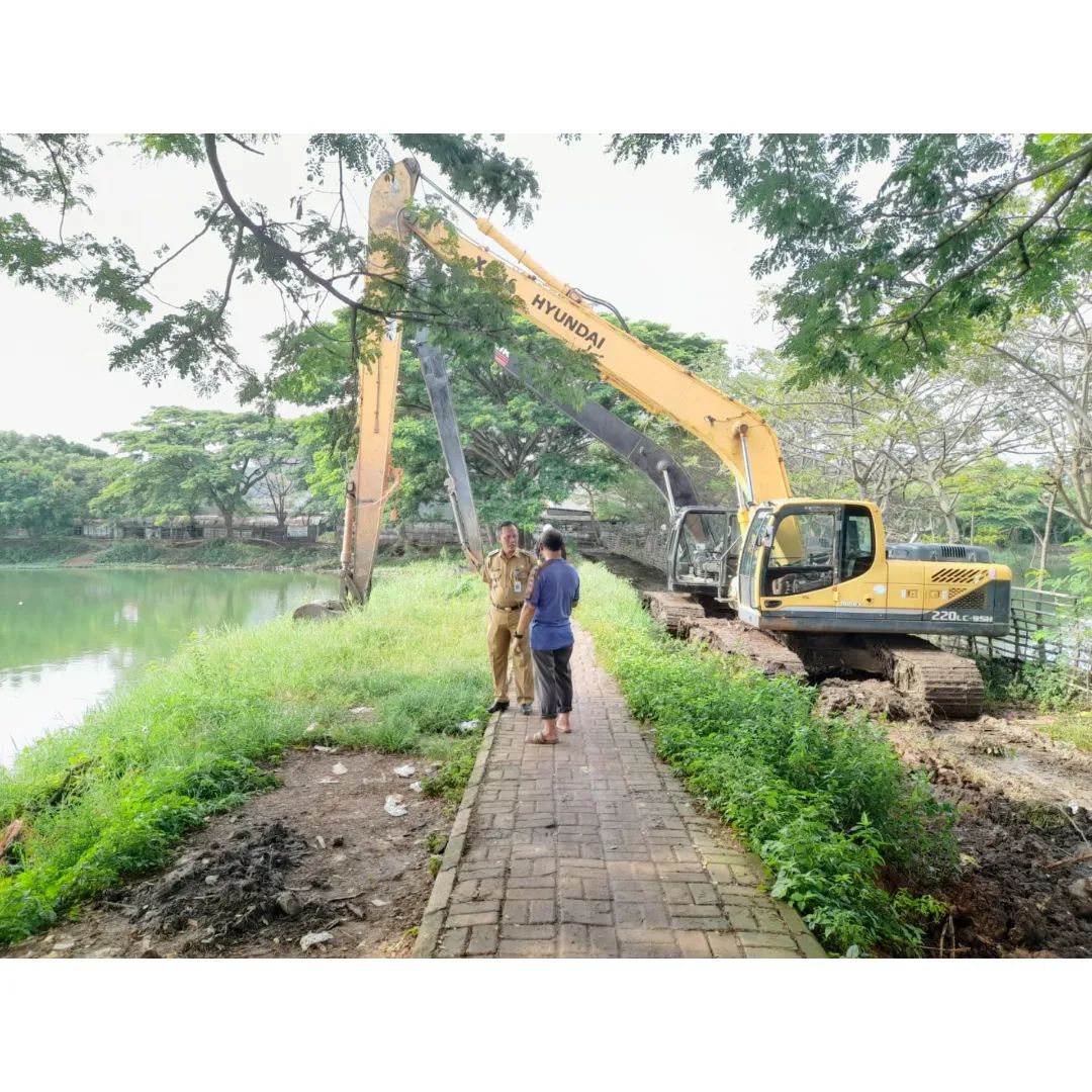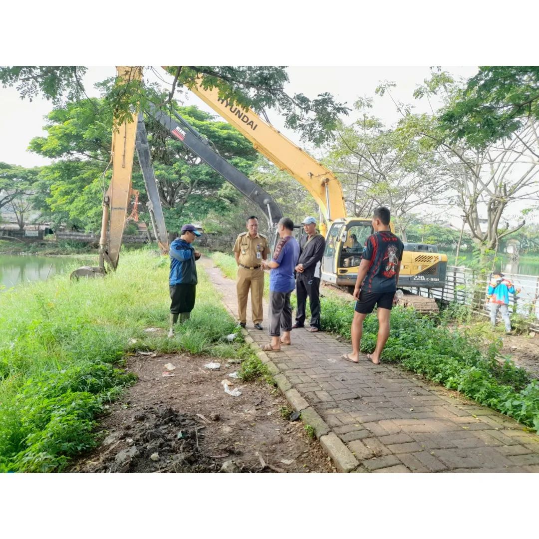 Camat Periuk Meninjau Pengerjaan Normalisasi Danau Situ Bulakan di Kelurahan Periuk